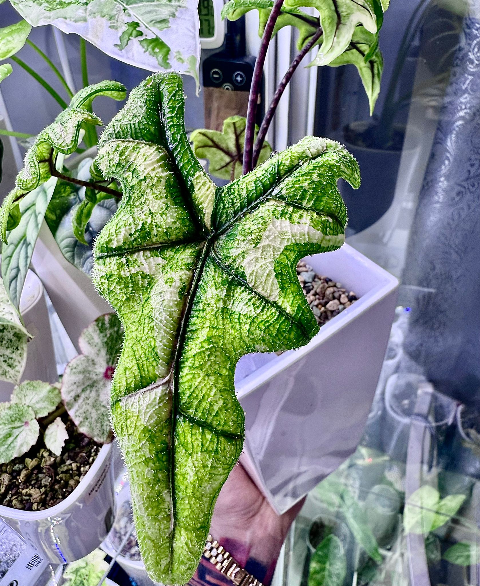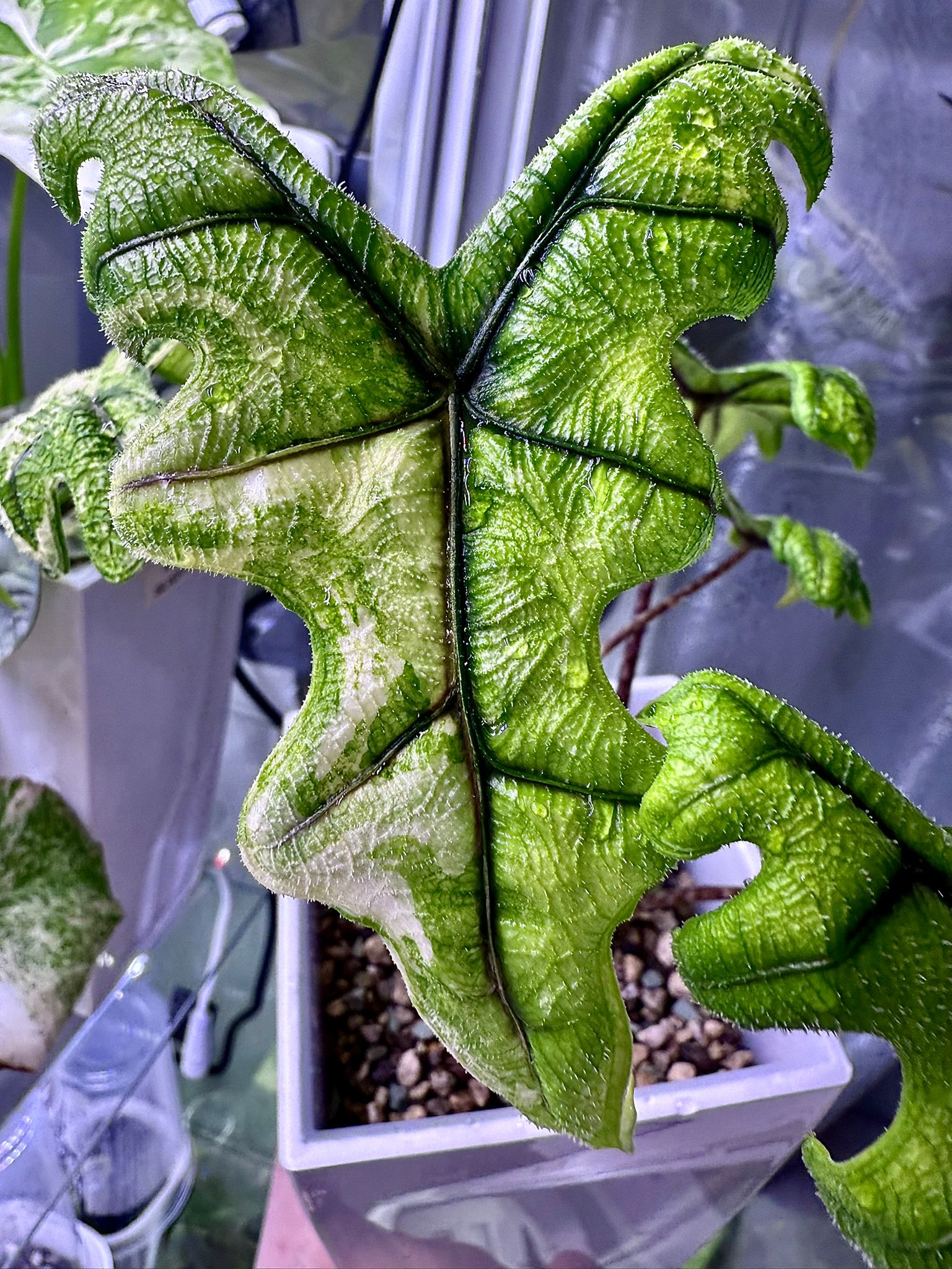 Mother plant not for sale. Baby is well rooted and showing beautiful variegation, working on its second leaf.