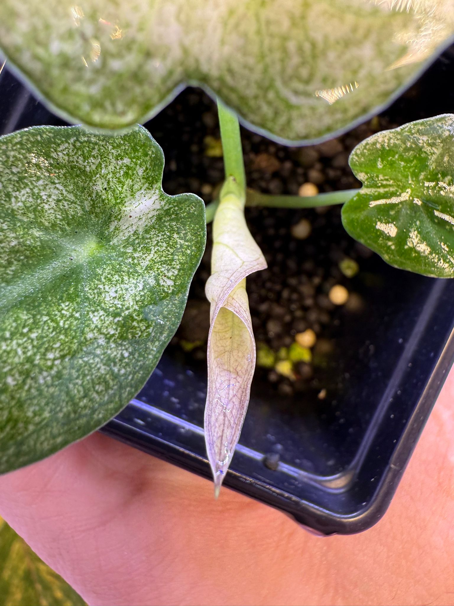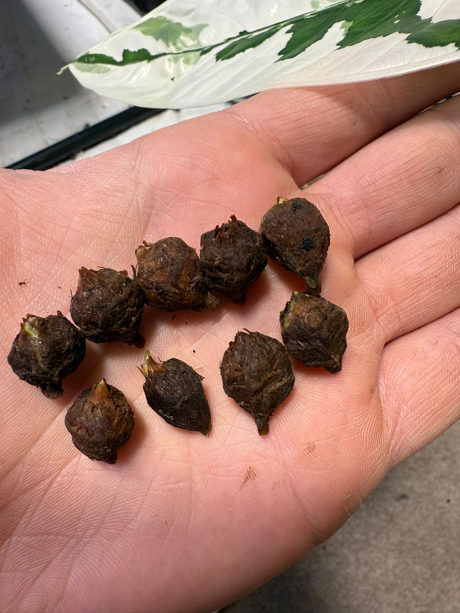 Mother plant not for sale. Baby plant very well rooted and pushing the 4th leaf. All corms are huge.